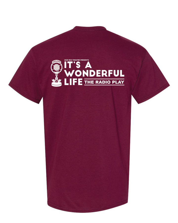 Preorder your "It's a Wonderful Life" tee. This is a pre-sale item. All shirts will be delivered in bulk to Redwood High School. You will be notified when distribution begins.